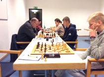 Spektakulärer war die Partie von Oskar Merle (Rheda). Er spielte gegen Michael Trost aus Rietberg zu tun. Michael spielt in Rietberg in der Bezirksliga am ersten Brett, und war mit einer DWZ von ca. 1770 sicher der Favorit. Aber heute konnte Oskar die Chancen nutzen, die Michael ihm anbot. Ab dem 12./13. Zug schlichen sich bei Michael Ungenauigkeiten ins Spiel ein, die Oskar sehr gut nutzen konnte. Er ließ sich nicht aus der Ruhe bringen, und spielte sein Spiel sehr sauber zu Ende. Bereits nach 25 Zügen musste Michael in aussichtsloser Lage aufgeben. Damit stehen Oskar und Thomas im Halbfinale.