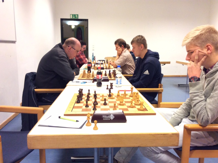 Heute wurde in Rietberg das Viertelfinale im Bezirkseinzelpokal ausgetragen. Unter den acht Spielern waren drei Spieler aus Brackwede, drei vom Gastgeber Rietberg und zwei aus Rheda. Thomas Bergmann (Rheda) hatte es mit Mark Ebner aus Brackwede zu tun. In der Eröffnung kam Thomas nicht so richtig aus den Puschen. Mark konnte das aber nicht richtig nutzen. Mit einem Springerzug nach e4 sah dessen Stellung sehr solide aus, und schien Druck auf die Stellung von Thomas auszuüben - aber das nur auf den ersten Blick. Obwohl der Springer durch einen Bauern gedeckt war, konnte Thomas mit der Dame den Springer schlagen. Würde der Bauer zurückschlagen, hätte Thomas die weiße Dame auf der Grundreihe schlagen können. So oder so war ein Figurengewinn die Konsequenz. Davon beflügelt machte Thomas keinen Fehler mehr, und brachte die Partie sauber ins Ziel.