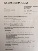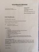 Thomas Bergmann durfte heute den Schachbezirk Bielefeld bei der Vorstandssitzung des Schachverbands Ostwestfalen-Lippe vertreten. Es war eine typische Arbeitssitzung, in der auf die Zeit seit dem letzten OWL-Kongress zurückgeblickt wurde, und die Weichen für die nächsten Arbeitsschritte gestellt wurden. Es war ein zum Teil lebhafter Austausch über Sachfragen von Satzung bis Spielbetrieb. Die Arbeit geht nicht aus. Nach der nächsten Vorstandssitzung werden sicher die diskutierten Punkte konkreter und für den nächsten OWL-Kongress vorbereitet.